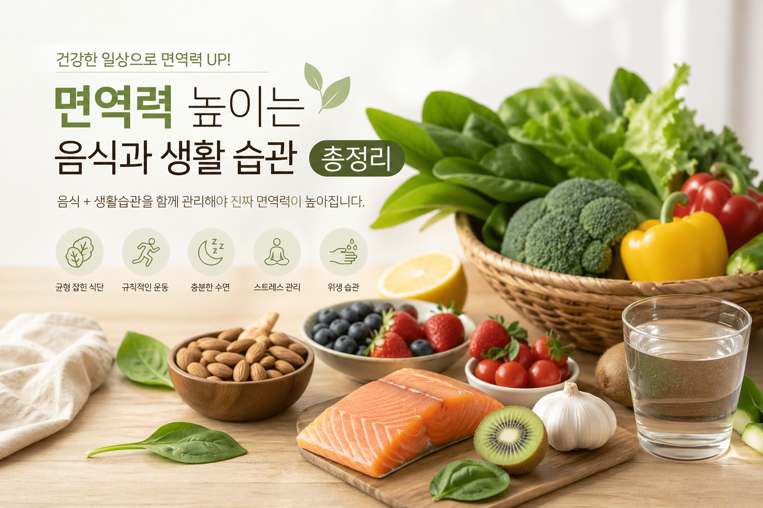 면역력은 특정 음식 하나로 갑자기 좋아지는 것이 아니라, 식사·수면·운동·스트레스 관리가 함께 맞물릴 때 안정적으로 유지됩니다.