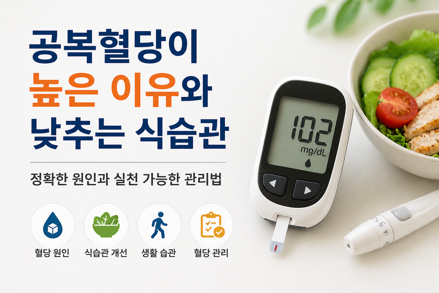 공복혈당은 아침 수치지만 전날 저녁 식사의 영향을 많이 받습니다. 흰쌀밥 한 공기를 반 공기로 줄이고 채소와 단백질을 늘리는 방식이 좋습니다.