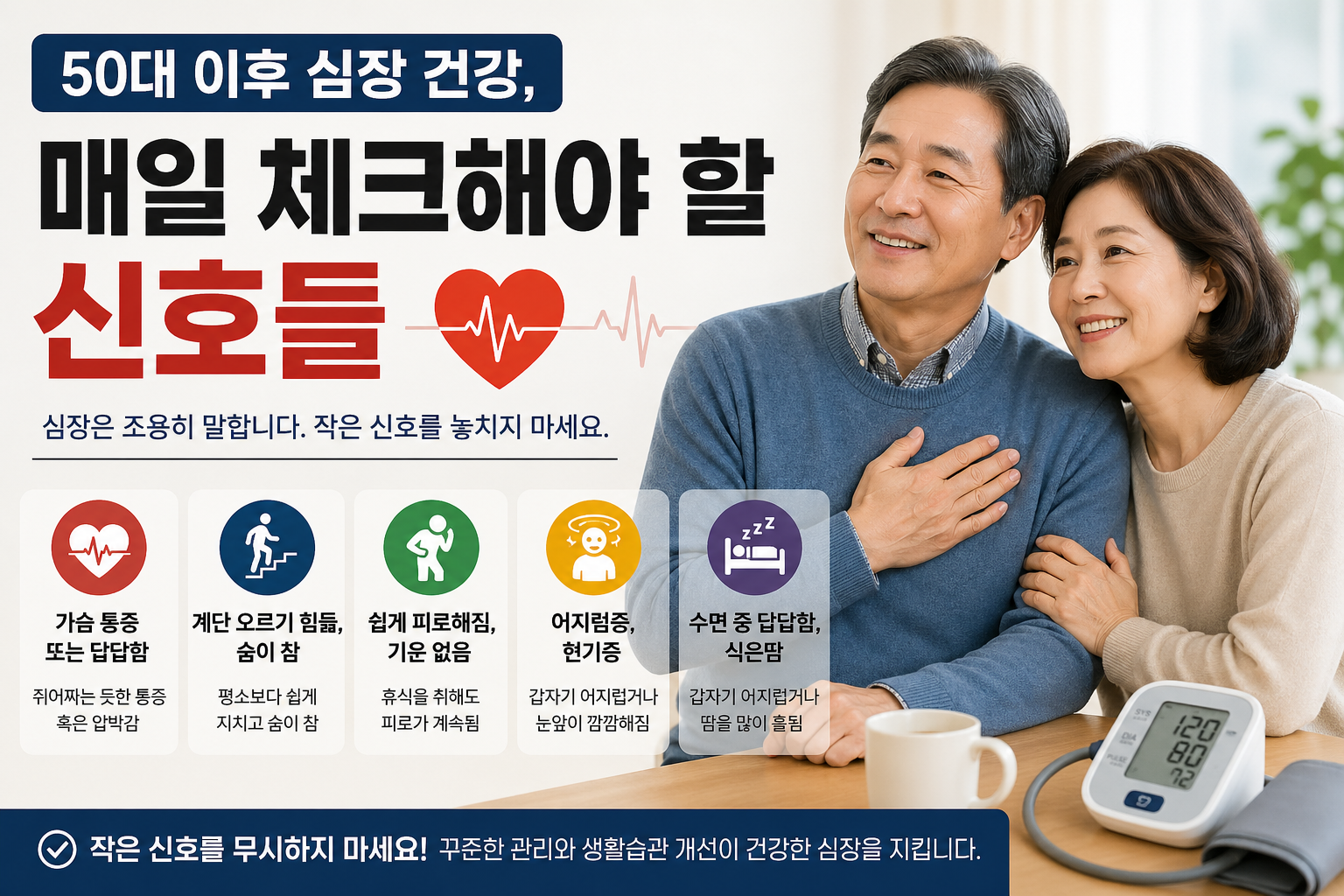 50대 이후 심장 건강, 매일 체크해야 할 위험 신호 7가지