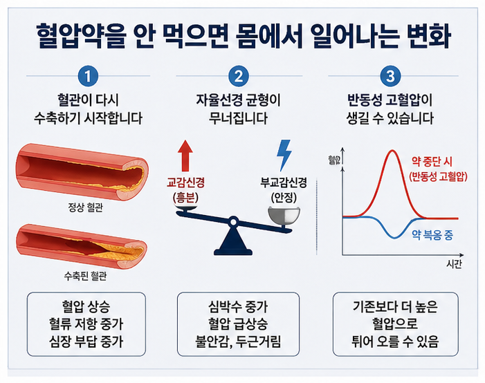 하지만 혈압약을 임의로 중단하는 행동은 생각보다 훨씬 위험할 수 있습니다.