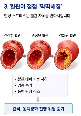 만성 스트레스는 단순한 일시적 상승이 아니라 혈관 자체를 변화시킵니다.