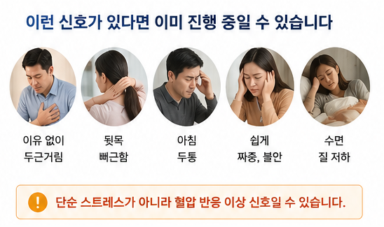 👉 단순 스트레스가 아니라 혈압 반응 이상 신호일 수 있습니다.