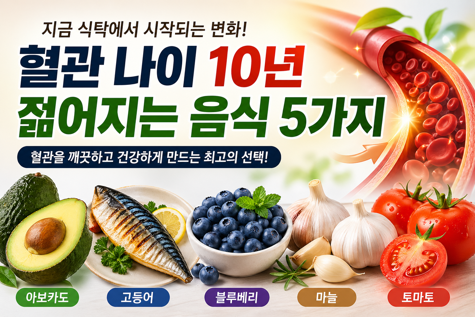 혈관 나이 10년 젊어지는 음식 5가지 – 지금 식탁에서 시작되는 변화퇴근 후 거울을 보다가 문득 느낍니다. 예전보다 쉽게 피로해지고, 계단을 오르면 숨이 찹니다. 건강검진에서 “혈관 나이가 실제보다 높다”는 말을 들은 순간, 머릿속이 복잡해집니다. 하지만 다행히도, 혈관은 지금부터라도 충분히 회복할 수 있습니다. 특히 매일 먹는 음식은 혈관 건강에 가장 강력한 영향을 미칩니다. 오늘부터 식탁 위를 조금만 바꿔도, 혈관 나이를 되돌리는 변화는 시작됩니다.🩸 혈관 나이가 중요한 이유혈관은 단순한 통로가 아닙니다. 우리 몸의 산소와 영양을 운반하는 생명선입니다. 나이가 들수록 혈관은 점점 딱딱해지고 좁아지며, 이는 고혈압, 심근경색, 뇌졸중 위험으로 이어집니다.혈관 탄력 감소 → 혈압 상승염증 증가 → 동..