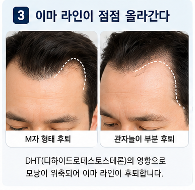 - 관자놀이 부분이 먼저 비어 보임